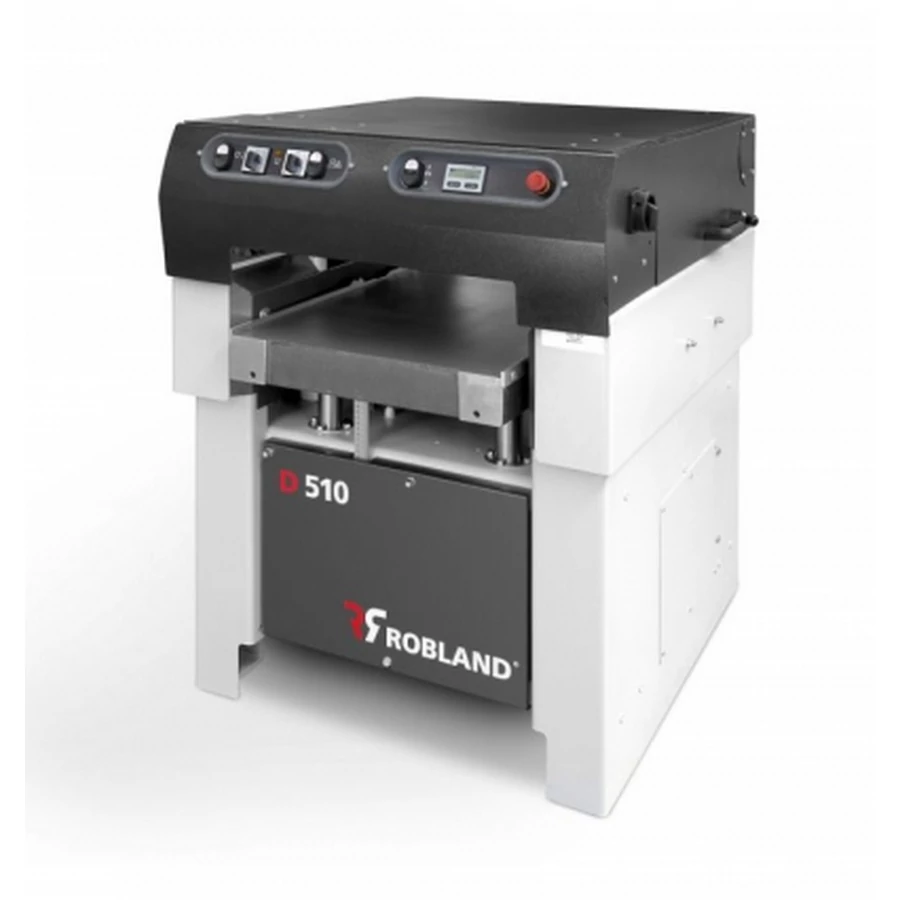 A Robland minőség, a gyártótól megszokott magas alapfelszereltséggel, rendkívül erős gépvázzal, hosszú asztallal, robusztus szürkeöntvény alkatrészekkel. Ez jellemzi a Robland D510 vastagsági gyalugépet. Négy ponton alátámasztott, egyedülálló zárt dugattyús, pormentesen zárt asztalemelő rendszerrel rendelkezik. Dupla ékszíjhajtás a gyalutengelyen. 2 db dalander motor a 4 sebességes előtoláshoz. Forgácstörő és leszorító a gyalutengely előtt és után. Kategóriájában a legjobb ár érték arányú vastagsági gyalugép.
